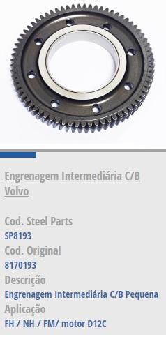 23481 - ENGRENAGEM INTERMEDIARIA VOLVO FH12/NH12 PEQUENA C/BUCHA