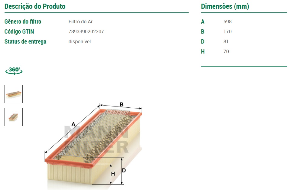 23956 - FILTRO AR MB 812/814/912 ELETRONICO