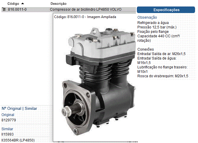 24980 - COMPRESSOR AR VOLVO NL12/EDC/FM10 TD100/101/102/120/121 2-CIL 440CC
