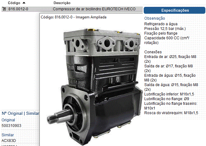 24994 - COMPRESSOR AR IVECO EUROTRAKKER MP 450E37 HT MODELO KNORR 2-CIL 600CC