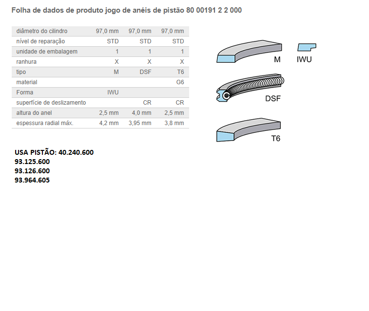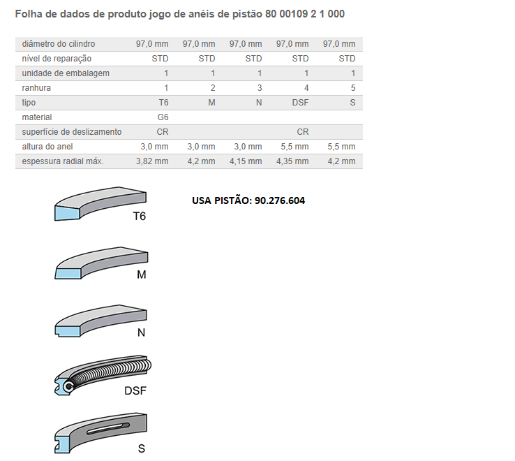 2525 - PISTAO C/ANEL MOTOR MB 352 5-CAN S/REB ANEL FERRO