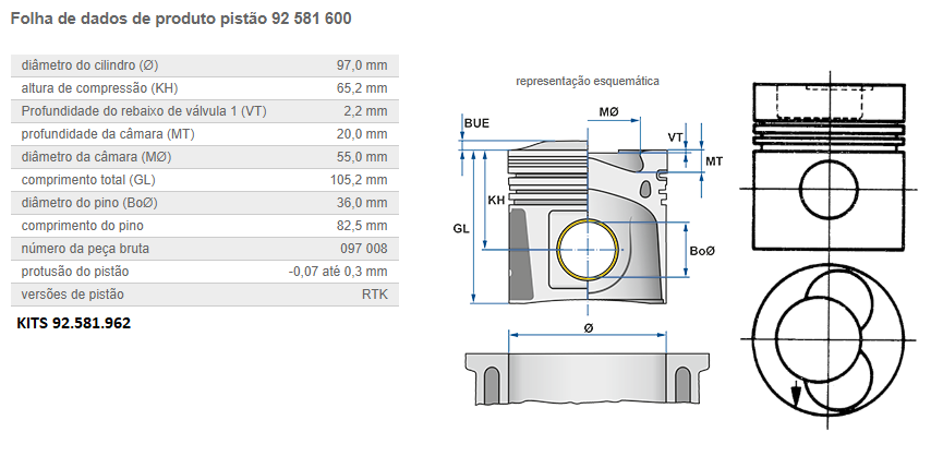 2527 - PISTAO C/ANEL MOTOR MB 352A 3 CANALETA S/REBAIXO