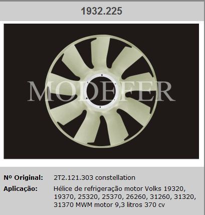 26463 - HELICE PLASTICO VW 19.320/25.320/19.370/25.370 MWM 9.3L 370CV C/ ARO 9-PAS