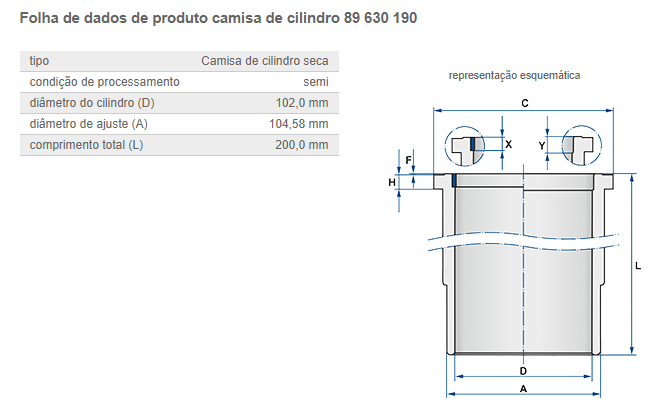 26480 - CAMISA MOTOR FORD CARGO/VW CUMMINS SERIE B 0.00 STD SEM COLARINHO
