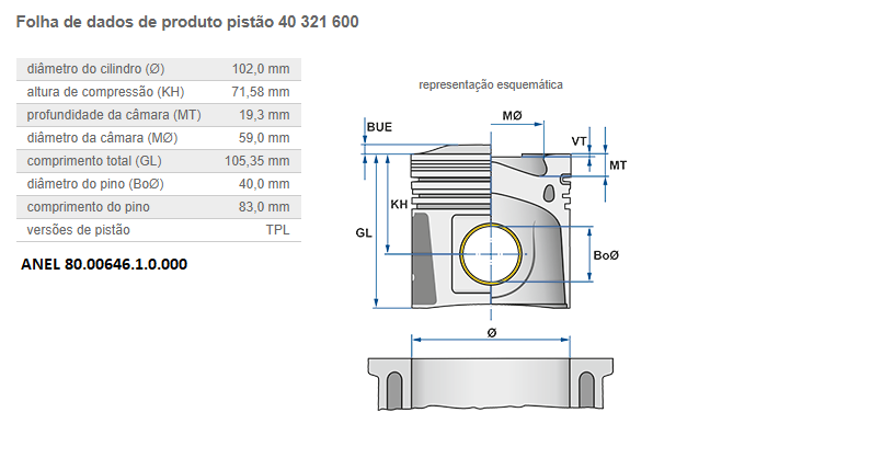 26482 - PISTAO C/ANEL MOTOR FORD CARGO/VW CUMMINS SERIE B NA 3.9L/5.9L 4/6-CIL 91/... 0.00 STD USA CAMISA CI-26480