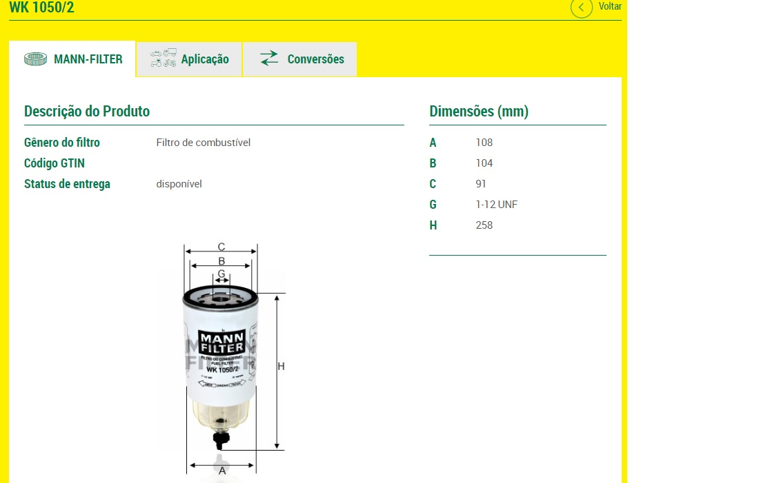 26526 - FILTRO RACOR MB 1938/2638 04/... CURTO 1X12UNF2B 10-MICRA C/ COPO ACOPLADO