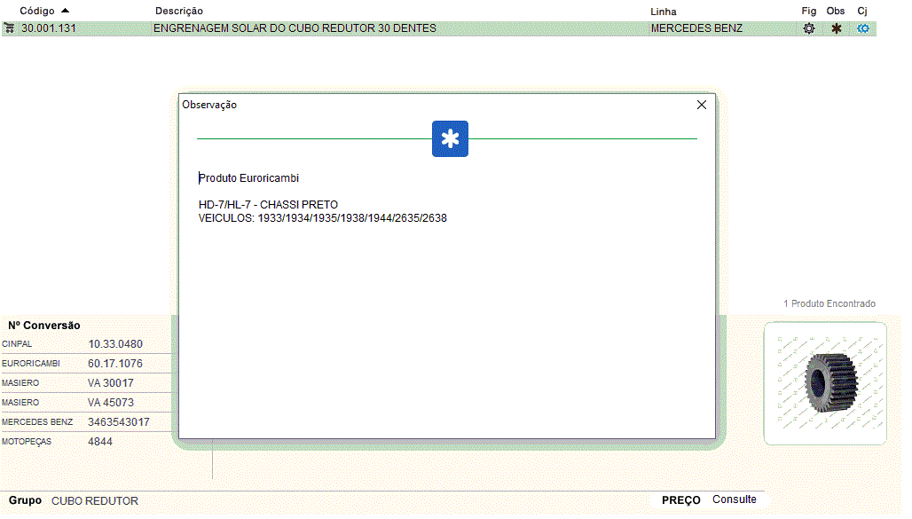27012 - ENGRENAGEM SOLAR CUBO REDUTOR MB 1935/1938 CHASSIS VERMELHO HD/HL-7