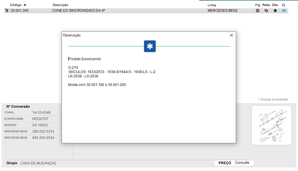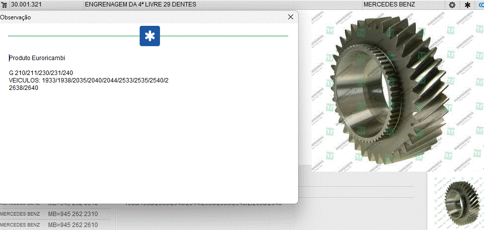 27463 - ENGRENAGEM CAMBIO MB 4-SUP G 240/260 1ª GERACAO USA ROLAMENTO CI 33080 + CI 1430