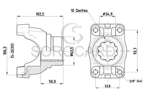 2743 - GARFO SOLDAR CARDAN VW/FORD/GM CANAVIEIRO NODULAR