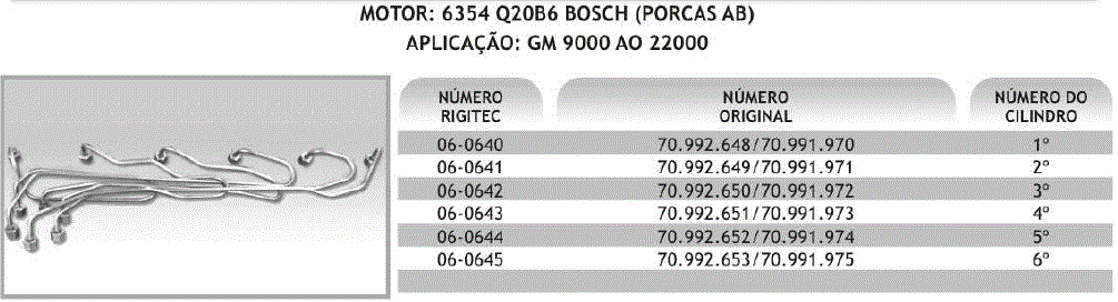 28557 - CANO INJ GM D9000/D11000/D22000 6354 Q20B6 BOMBA BOSCH 6-CIL