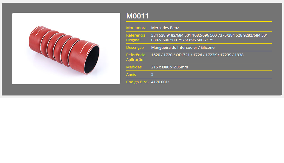 28820 - MANGUEIRA INTERCOOLER MB 1620/1938/1723/OF1721