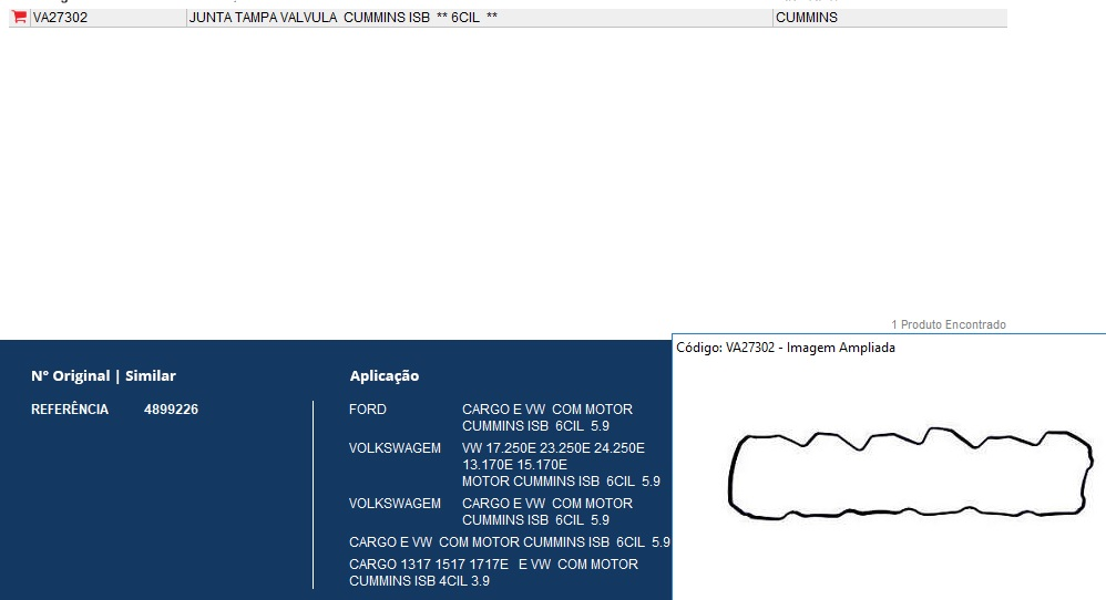 28854 - JUNTA BORRACHA TAMPA VALVULA FORD CARGO/VW CUMMINS SERIE C ELETRONICO