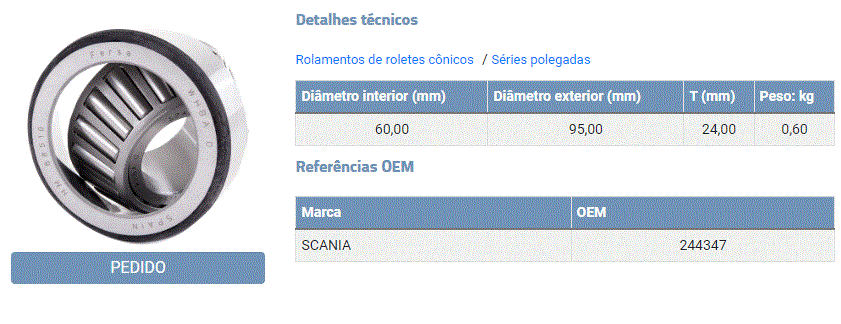 29241 - ROLAMENTO CAMBIO SCANIA EIXO PILOTO SCANIA GRS900/GR875/GRS895/GRS905/GRS925/GRSO905/GRSO925