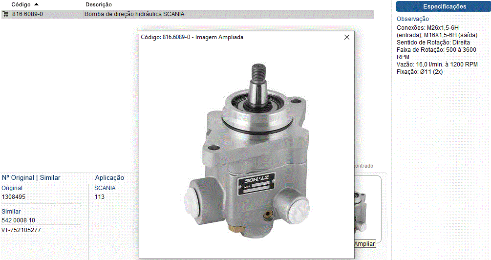 29253 - BOMBA DIR HIDRAULICA SCANIA 113 ROTACAO DIREITA MODELO ORIGINAL
