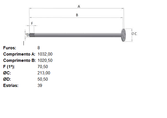 29464 - SEMI EIXO FORD CARGO/VW DIF MS230/MS235