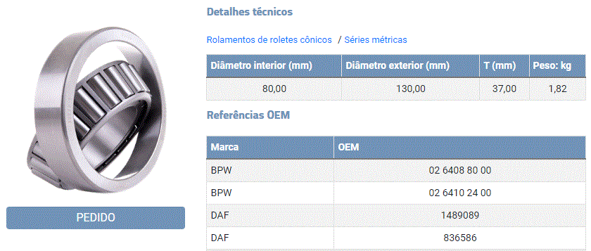 30304 - ROLAMENTO RODA TRAS INT MB O500/OF1622/OF1417