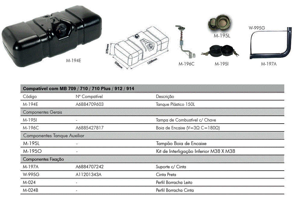 30935 - TANQUE COMBUST 150L PLAST QUADRADO MB 709/912 BOIA ENCAIXE