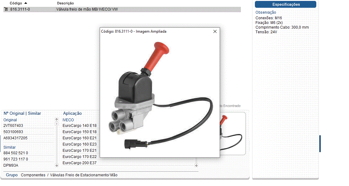 30952 - VALVULA FREIO MAO VW 8.150/9.150/13.150/13.180/15.180/26.260/26.310/40.300