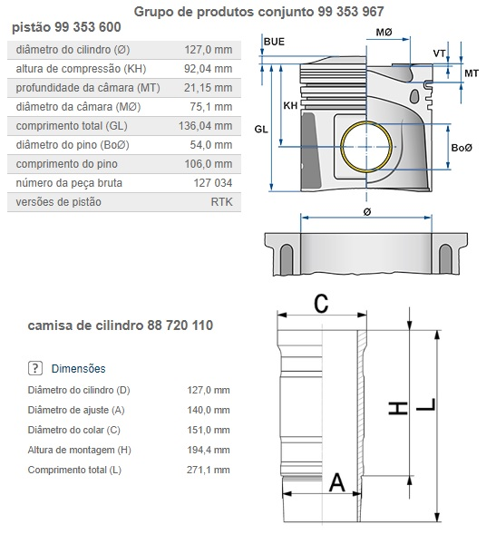 31704 - JG PISTAO C/ANEL COMPR WABCO MB/VW/FORD CARGO CUMMINS 85MM