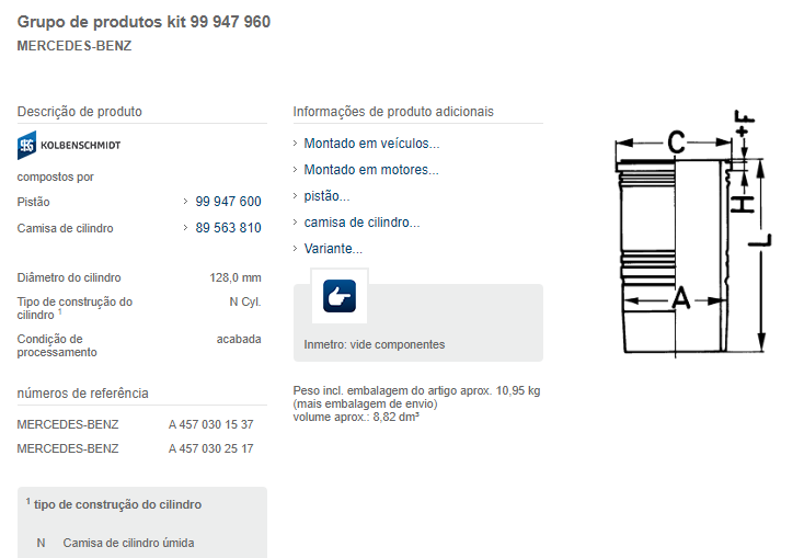 31932 - KITS MOTOR MB 457 ELETRONICO 1938/2638 COM CANAL REFR. CAMARA -15,85MM