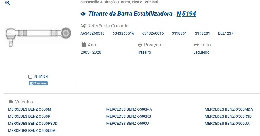 32664 - BARRA ESTABIL TRASEIRA CURTA MB O500 LE