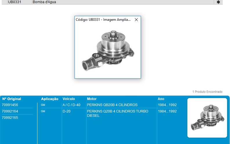 3294 - BOMBA D/AGUA GM MAXION/PERKINS D20/D40 Q20B/4236 .../92 C/ POLIA SIMPLES