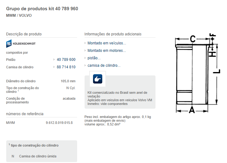 32989 - KITS MOTOR MWM X-12T 6.12T VOLVO VM310