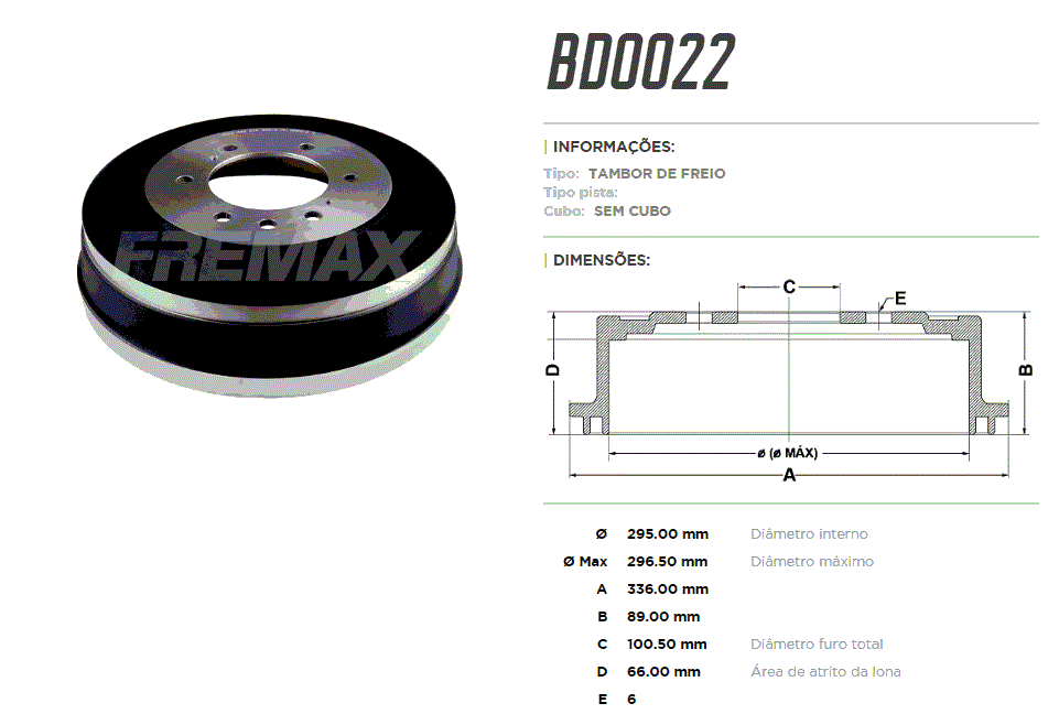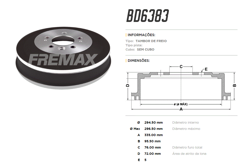 34314 - TAMBOR TRAS FORD F4000 96/98 6-FUR