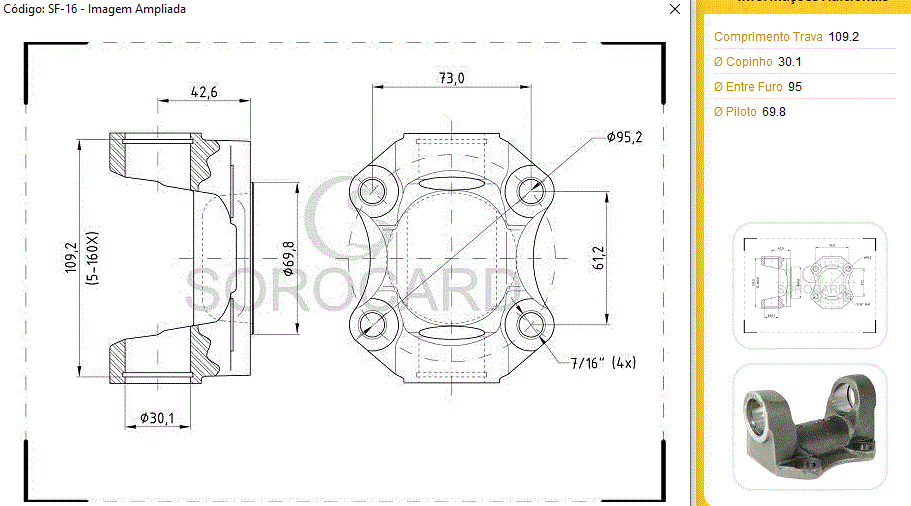 34794 - FLANGE PINHAO MB 1620/1721 ONIBUS CRUZETA CZ271 YOKI