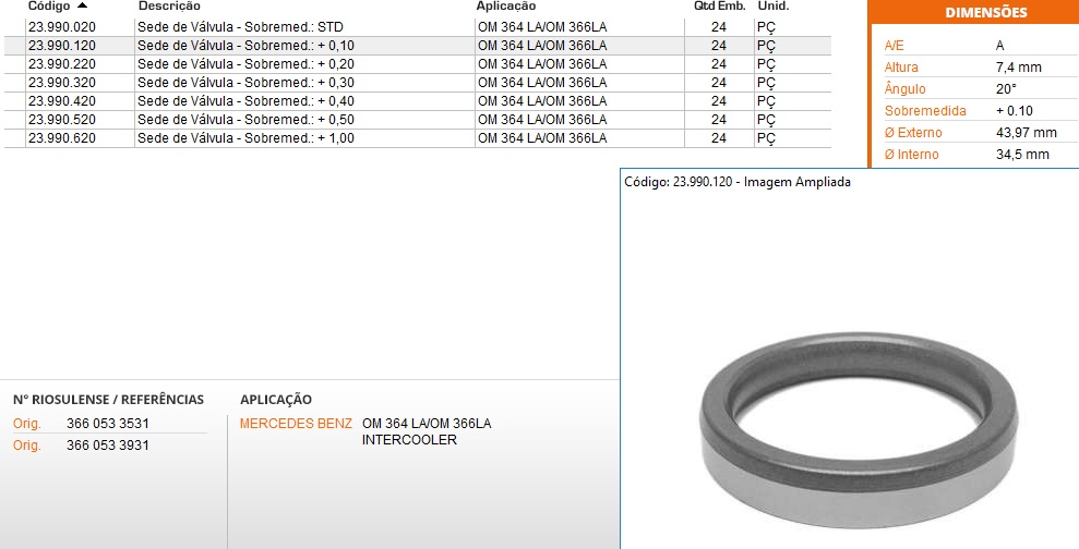 3477 - SEDE VALVULA ADMISSAO MB 364LA/366LA CAB.20 +0.10