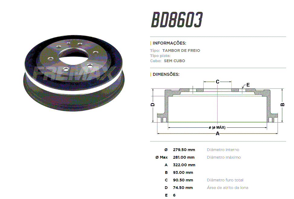 34951 - TAMBOR TRAS GM A10/D10/D20 80/... 6-FUROS