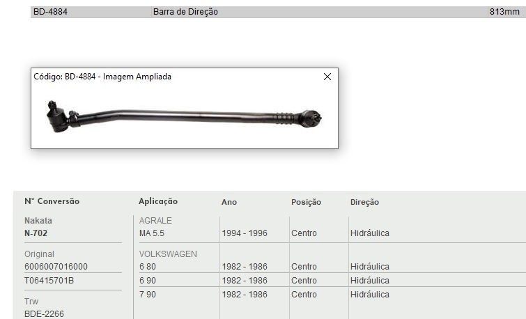 35561 - BARRA DIRECAO CURTA VW 6.90/7.90 .../86