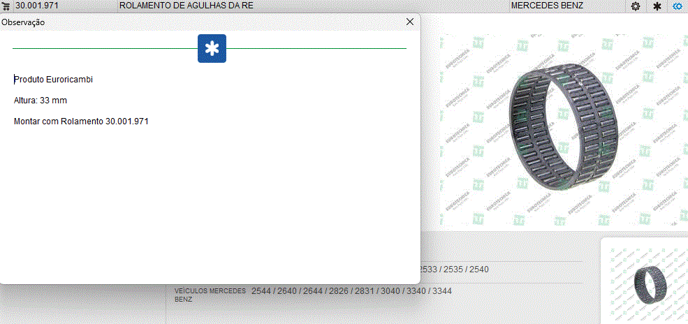 3588 - ROLAMENTO GAIOLA CAMBIO RE GRANDE MB AXOR G 210/211/240/260/280/281/330