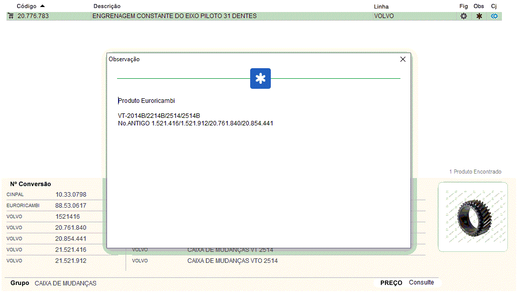 35815 - ENGRENAGEM CAMBIO VOLVO 1-SUP VT2014B/VT2214B/VT2514