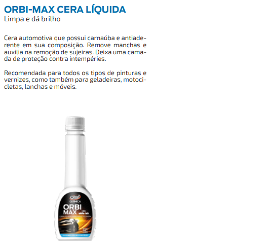36837 - CERA LIQUIDA LIMPADORA/BRILHO ORBI-MAX 200 ML