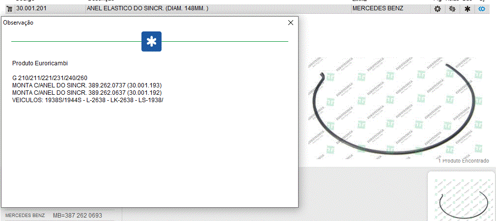 37253 - ANEL TRAVA SINCRONIZADO CAMBIO MB G 131/210/240