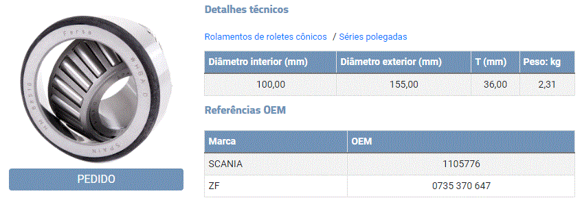 37637 - ROLAMENTO LATERAL COROA GRAN SCANIA R660 K113