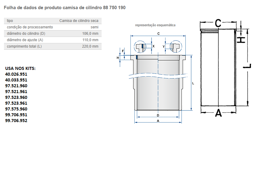3815 - CAMISA MOTOR MB OM 924/926 0.00 S/FLANGE EURO III V