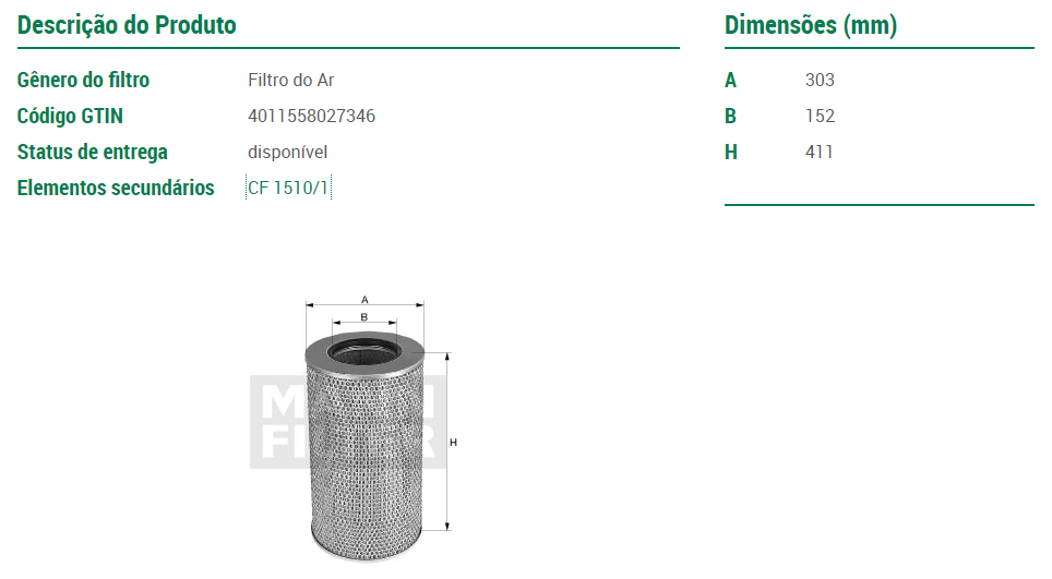 38139 - FILTRO AR VOLVO FM12/FM370 PRIMEIRO/EXTERNO
