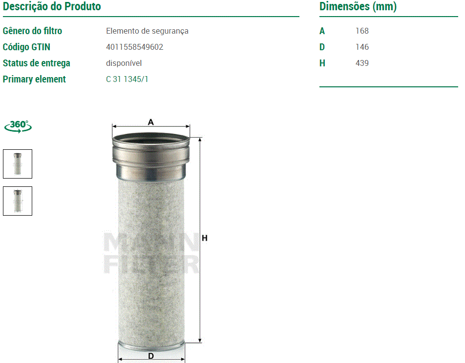 38140 - FILTRO AR VOLVO FM12/FM370 SEGUNDO/INTERNO