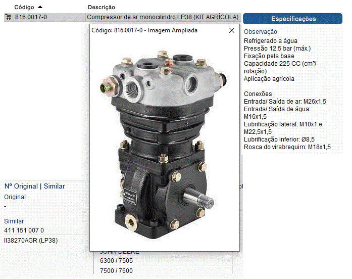 38171 - COMPRESSOR AR MB OH1420 OH1521 1-CIL 225CC