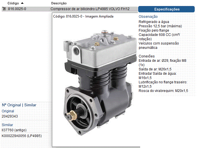 38661 - COMPRESSOR AR VOLVO FH12/FM12/NH12 D12 2-CIL 608CC
