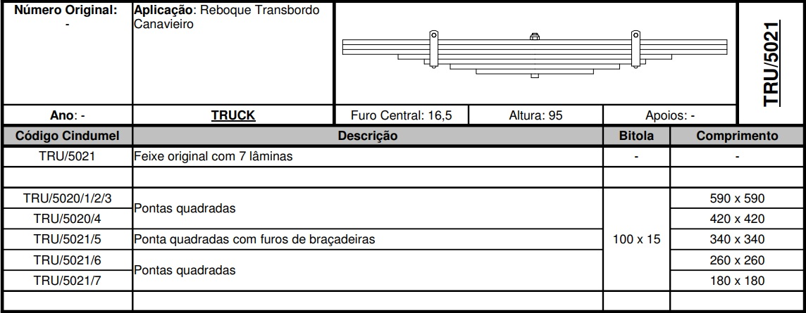 38670 - FECHO MOLA FECHO CARRETA CANAVIEIRA 2 EIXOS REBOQUE/DOLLY FORA CENTRO 11 LAMINAS