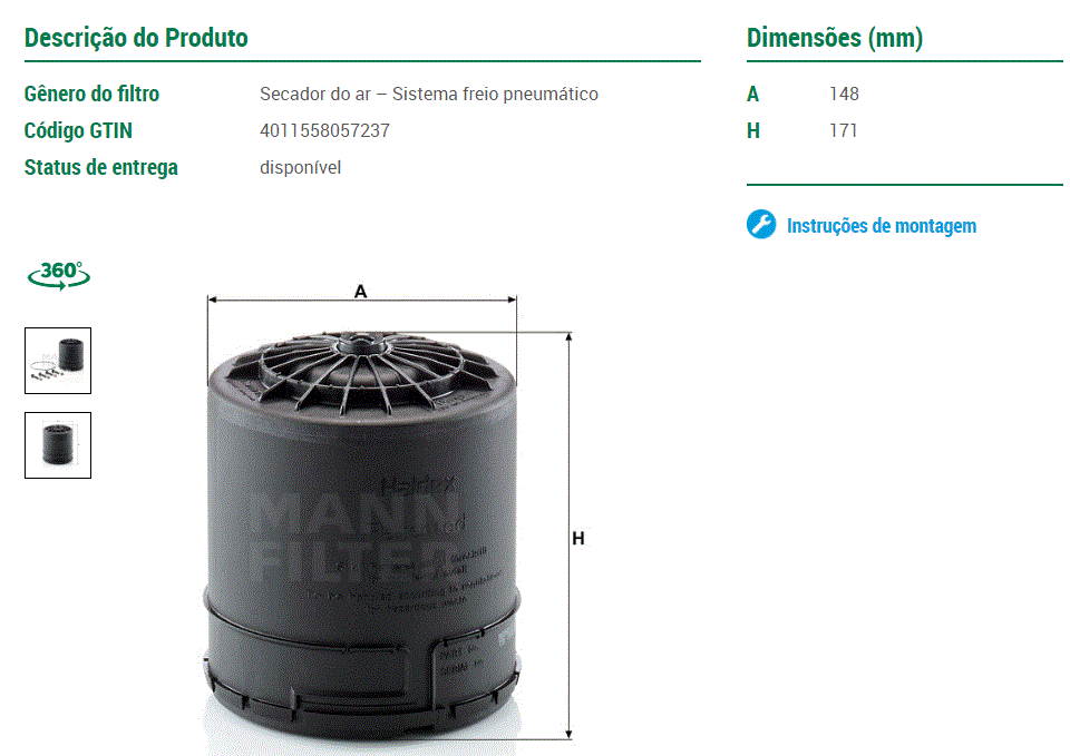 38704 - FILTRO REFIL SECADOR APU ONIBUS VOLVO/SCANIA SERIE 4 PRETA