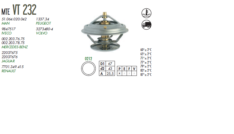 38744 - VALVULA TERMOSTATICA IVECO EUROCARGO TECTOR 4 81 GRAUS