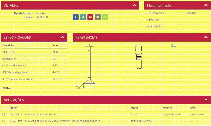 39106 - VALVULA CABECOTE ADMISSAO GM/PERKINS 3152/4203 RETA