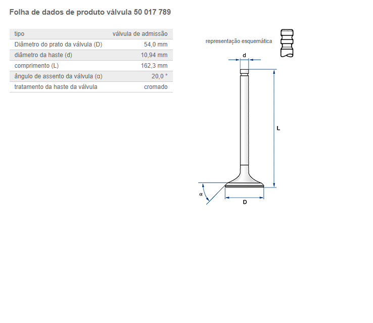 39148 - VALVULA CABECOTE ADMISSAO IVECO DAILY 2.8 16V