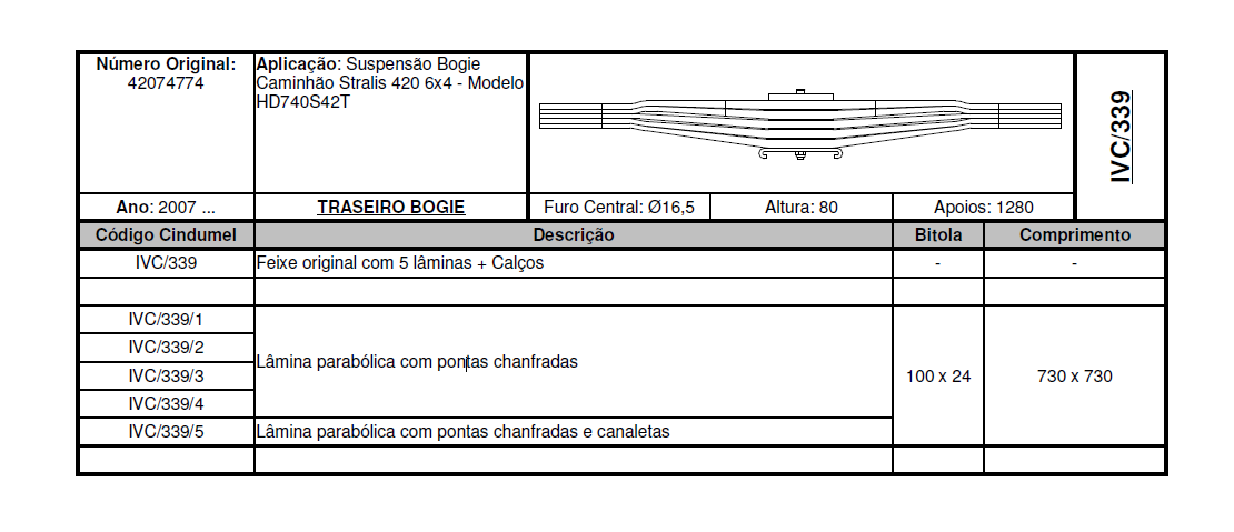 39252 - MOLA FECHO TRAS 4 IVECO STRALIS 420/430 6X4 2007/... BOGIE PARABOLICA
