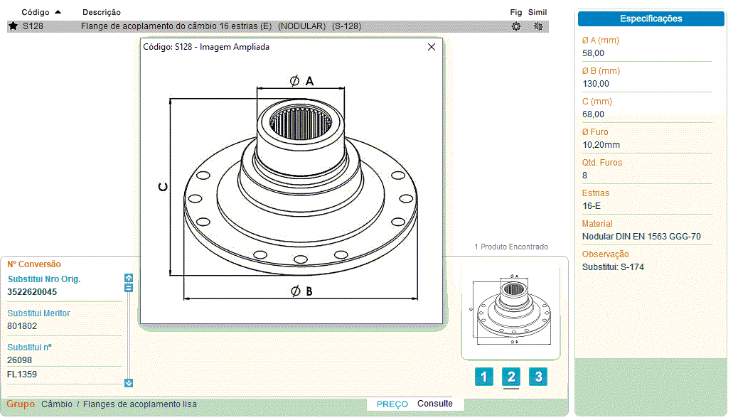 39340 - FLANGE CARDAN/CAMBIO/DIFER SCANIA 113/114/124 P50 NODULAR