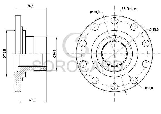 39382 - FLANGE CARDAN MB 2213/L2314 8 FUROS TRACADO C/ OLHAL ACO